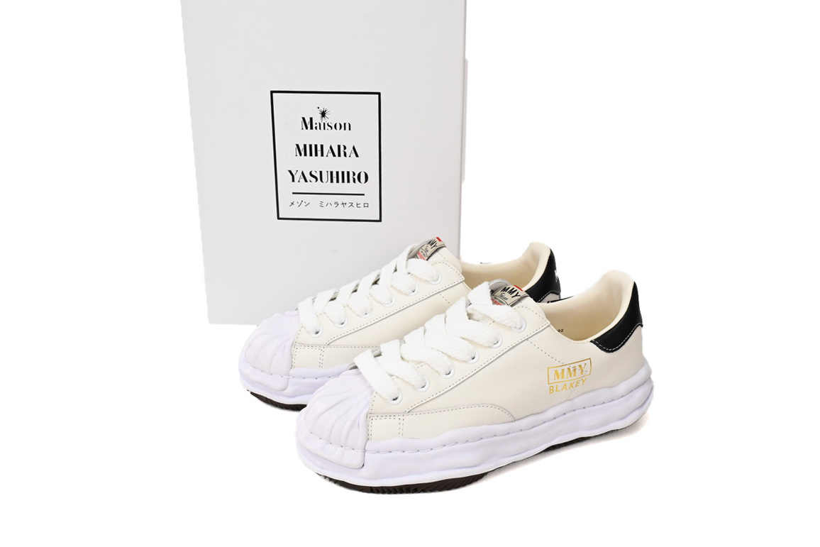 메종 미하라 야스히로 블레이키 Og 솔 레더 로우탑 스니커즈 화이트